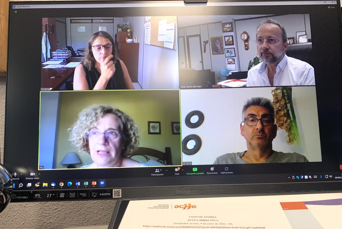 La Junta de la Asociación de counselling ACHE, presidida por José Carlos Bermejo, prepara la Asamblea, que se celebrará en Barcelona el 11 de junio, con ocasión de las VII Jornadas de la Asociación de counselling humanista ACHE. 60 socios se apasionan por acompañar con esta forma humanista de acompañamiento.