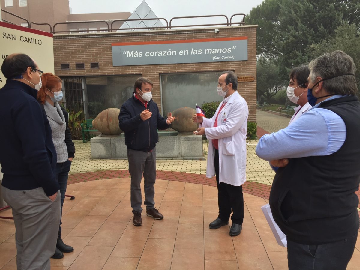 D. Jesús Moreno, alcalde de Tres Cantos, entrega a José Carlos Bermejo un símbolo de identidad y pertenencia: la bandera de Tres Cantos, con ocasión de la visita al Centro San Camilo para felicitar la Navidad y anunciar el modo cómo se harán próximos los Reyes Magos en la entrada del Centro el día 2 de enero.