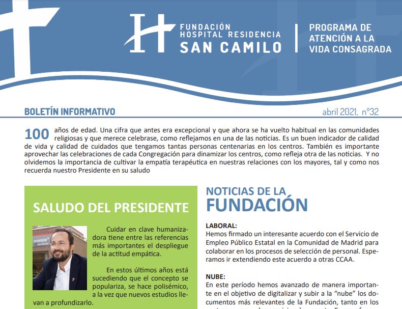 La Fundación San Camilo cuida en España a personas mayores en 72 Centros de religiosas. Su presidente, José Carlos Bermejo, vela por el modelo de atención desde el carisma camiliano, con la profesionalidad y la ternura propia del "corazón en las manos", como exhortaba San Camilo a cuidar.