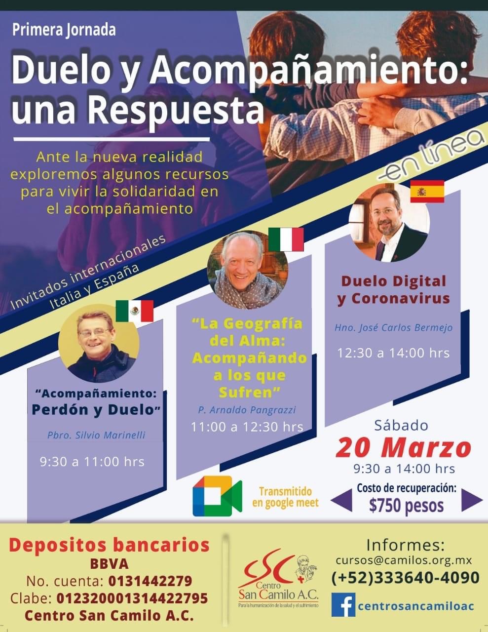 Sobre duelo digital y coronavirus hablará José Carlos Bermejo en la Jornada sobre duelo del Centro San Camilo de Guadalajara, México, el 20 de marzo.