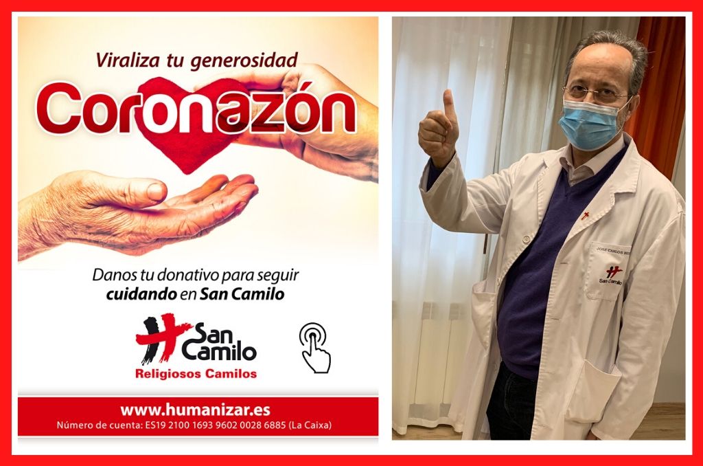 Tras la campaña realizada durante el mes de abril CORONAZÓN, que ha recaudado de numerosos donantes lo necesario para el material consumido en marzo-abril para la prevención en el Centro San Camilo, el Director del Centro, José Carlos Bermejo, que ha atravesado en primera persona la enfermedad, propone un mes más de campaña, destinada esta vez al reconocimiento de los trabajadores que han estado y están en primera línea de cuidado.