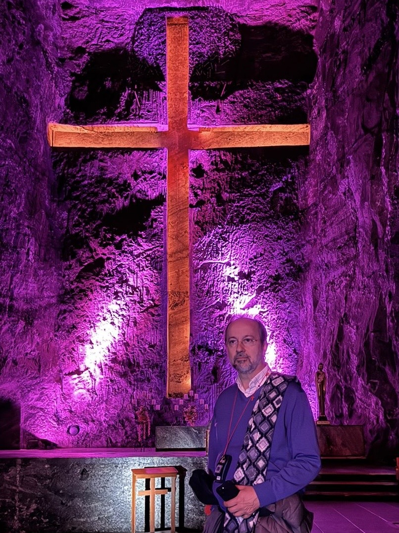 Templo subterraneo excavado en Sal cerca de Bogotá, visitado por José Carlos Bermejo admirando la interioridad.