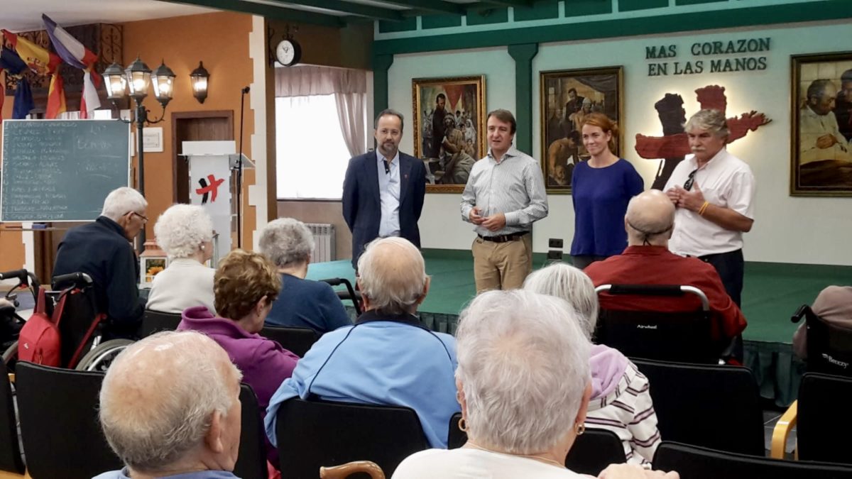 El alcalde de Tres Cantos, D. Jesús Moreno, visita el Centro de Día del Centro San Camilo, escuchando algunas inquietudes de los usuarios y deseándoles salud. José Carlos Bermejo, director del Centro, insiste en que un Centro de Día es una respuesta humanizadora de la ciudad para los ciudadanos que necesitan compatibilizar su vida en casa con los servicios que encuentran en el Centro.