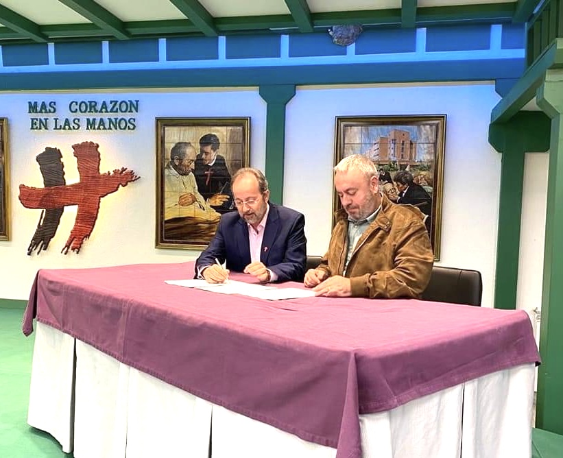 Paco Carmona y José Carlos Bermejo firman el convenio de colaboración para la colaboración con el Centro de Escucha de la diócesis de Palma de Mallorca, recientemente inaugurado en la casa de la Iglesia.