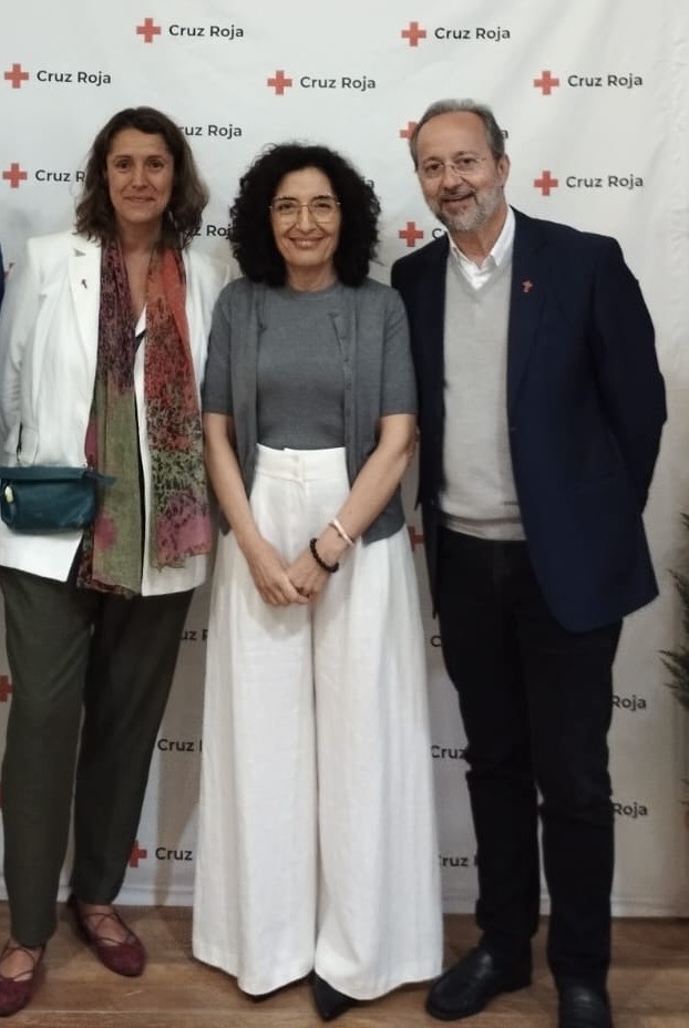 En Oviedo, en el Ayuntamiento, la presidenta de Cruz Roja, la Dra. Mari Mar Pageo, recibe a Cristina Muñoz y José Carlos Bermejo representando al Centro San Camilo que recibirá la medalla de oro por la humanidad en el alivio del sufrimiento.