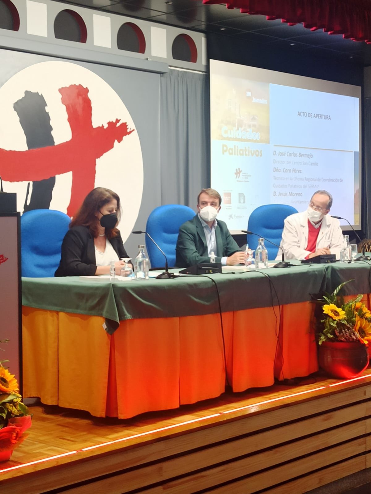 Aprovechar la coyuntura para promover una cultura del alivio sintomático, del acompañamiento en el sufrimiento, de humanización del morir sin encarnizamiento, con sedación adecuada cuando indicada... han sido las claves con las que José Carlos Bermejo, junto con Coro Pérez y el alcalde de Tres Cantos, Jesús Moreno, ha abierto las XVI Jornadas de Cuidados Paliativos en San Camilo.