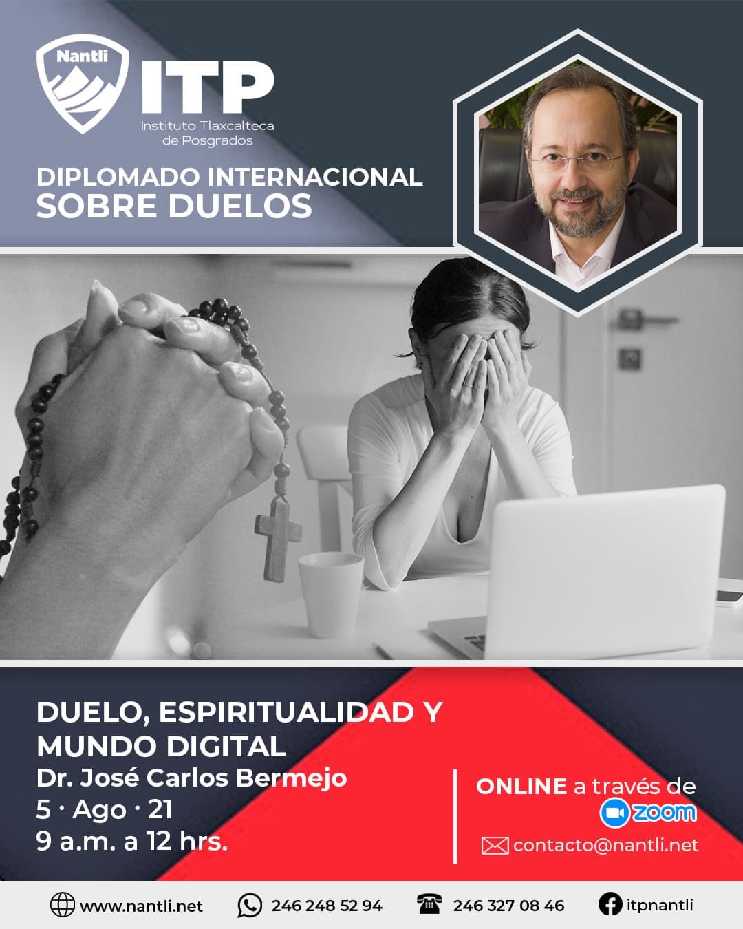 El 5 de agosto, en el Diplomado internacional sobre duelos, José Carlos Bermejo disertará 3 horas sobre duelo y espiritualidad. Es un tema sobre el que también ha realizado una investigación que aparecerá en forma de libro en noviembre próximo: "Las 7 tareas espirituales del duelo" en Desclée De Brouwer.