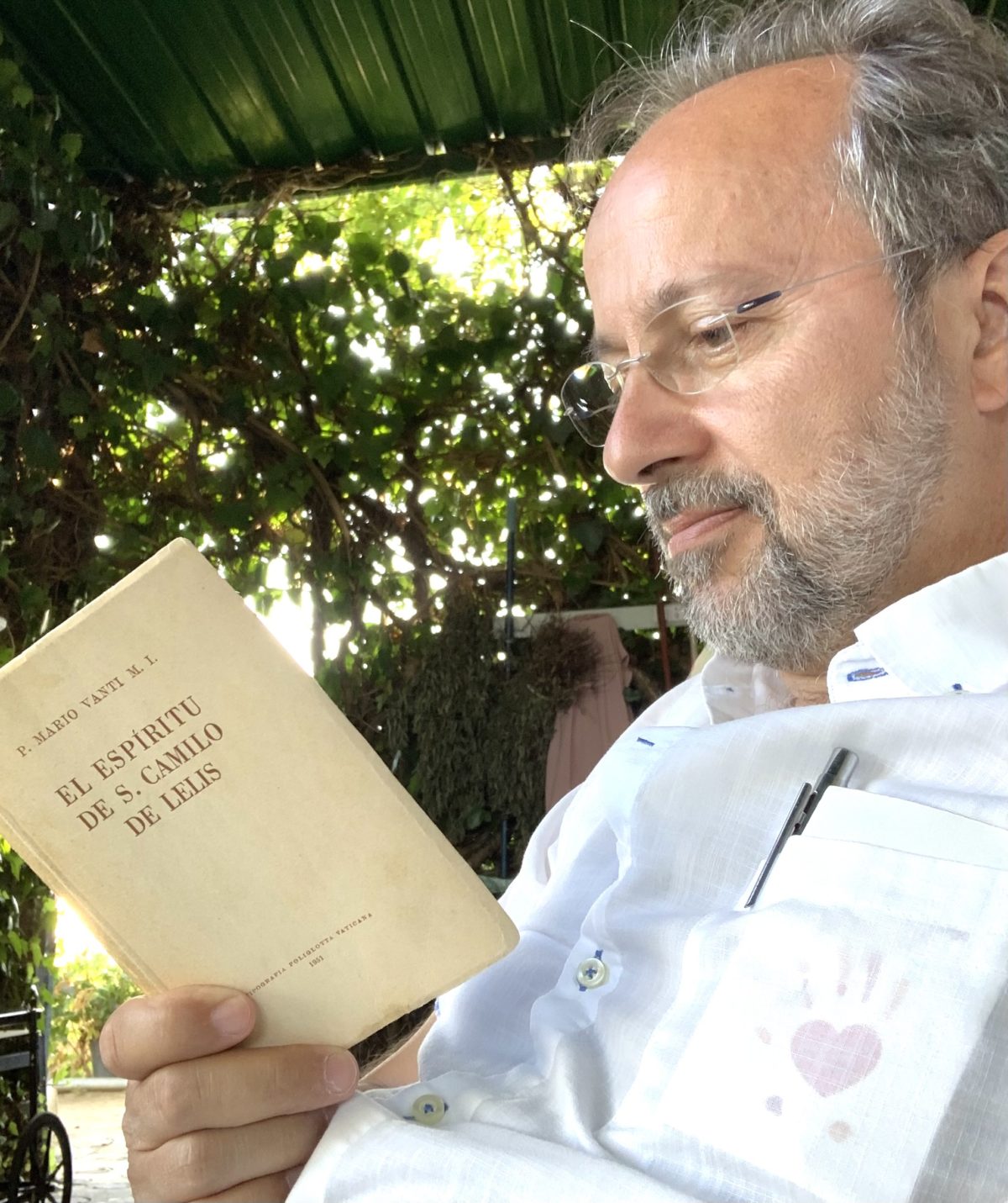 Leer libros viejos es también un placer del descanso. El espíritu de San Camilo es un libro de 1951 de Mario Vanti. Algunas claves de la aportación humanizadora de Camilo al mundo de la salud, quizás solo se aprecien en esta obra que Bermejo lee ahora.