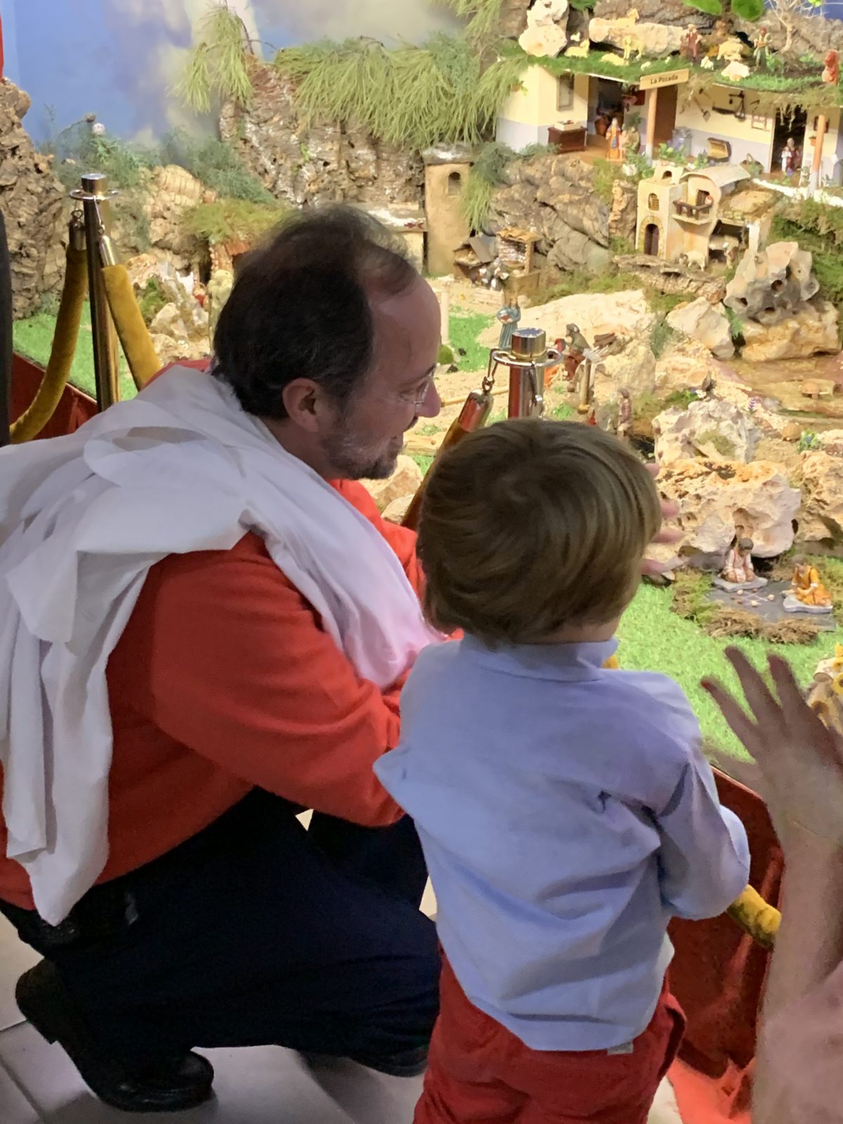 En San Camilo, en el Centro de Humanización de la Salud, lo que se representa en el Belén es la vida del Centro. Un espacio representa el cuidado en Residencia de mayores. Otro, el cuidado a las personas al final de la vida. Otro, la atención al duelo. Otro la actividad formativa. No falta el diálogo intereligioso y la Unidad Móvil de Intervención. Todo ello, teniendo en el Centro al Niño, que nace y por el que pasan tres ríos que dan vida al mundo de la fragilidad que se pretende humanizar. José Carlos Bermejo ha colocado el Niño con el niño.