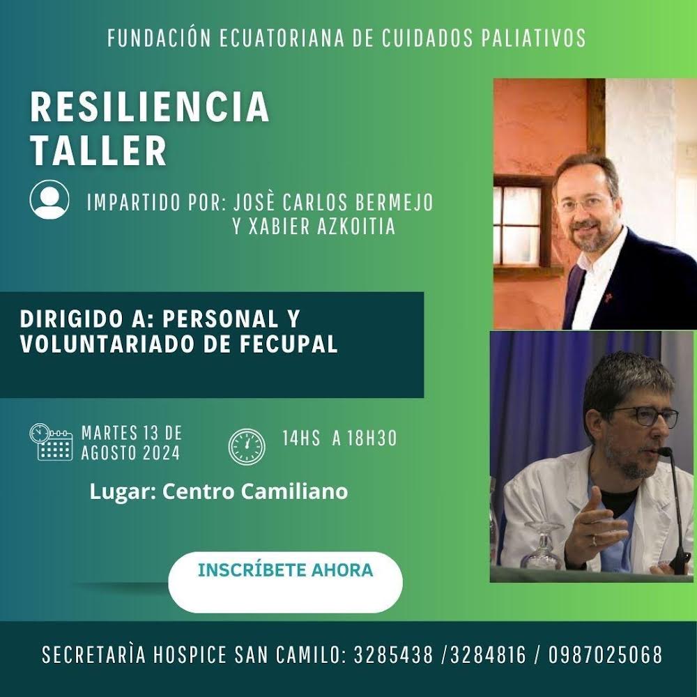 El día 13 de agosto, José Carlos Bermejo y Xabier Azkoitia impartirán un seminario dirigido a personal y voluntariado de la Fundación Ecuatoriana de Cuidados Paliativos, presidida por Alberto Redaelli y dirigida por Lucy Maldonado. Una colaboración para humanizar el cuidado al final de la vida.