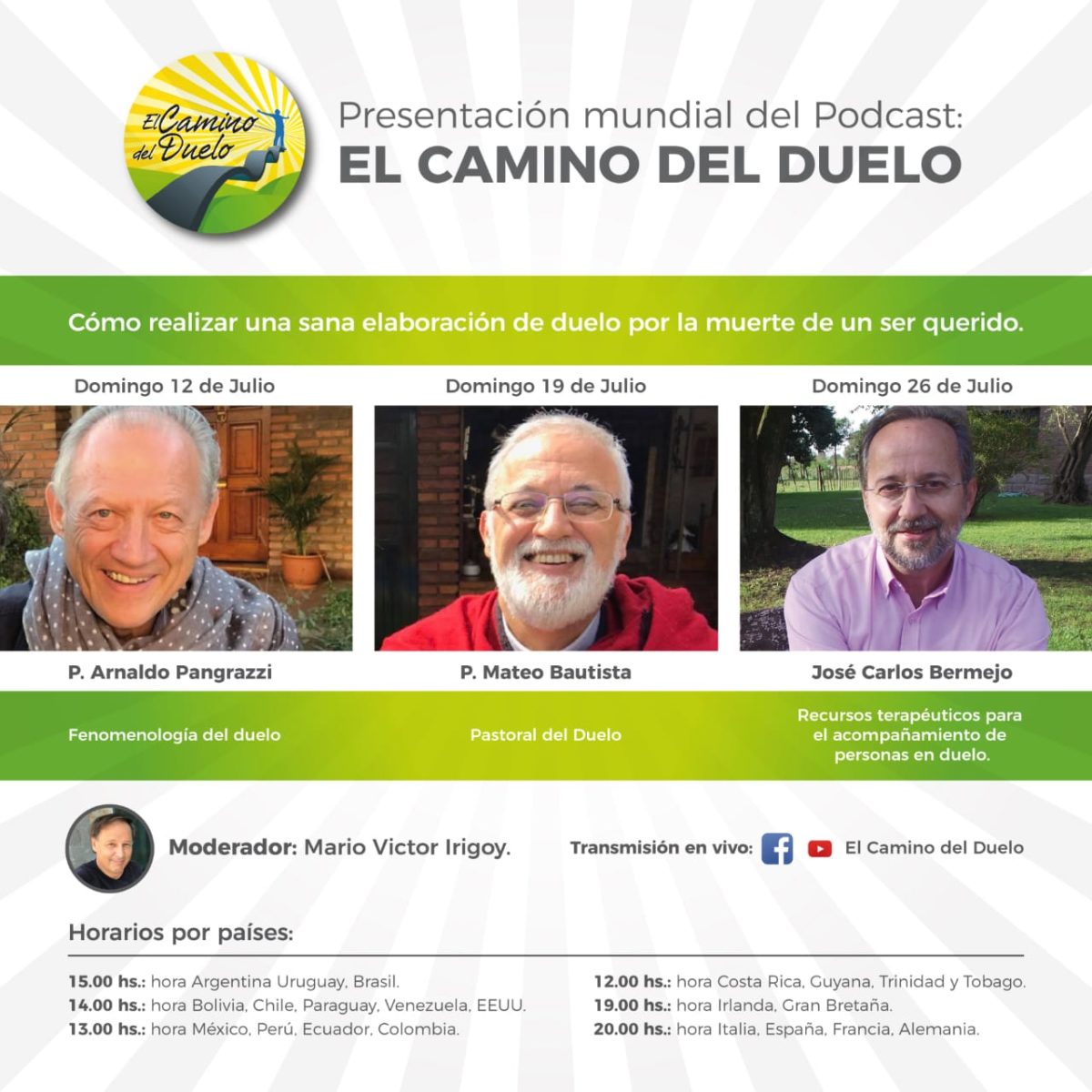 El Camino del duelo, promovido por Argentina, de la mano de Mario V. Irigoy, presenta tres sesiones, los domingos por la tarde. El día 26, de julio, a las 20 hs. en España, con José Carlos Bermejo, sobre "Recursos terapéuticos para el acompañamiento de personas en duelo".