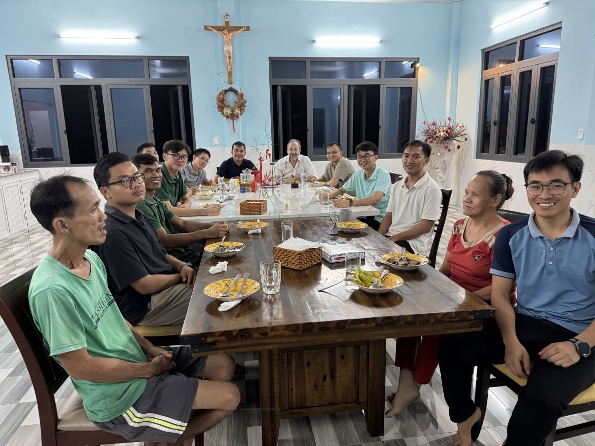 Novicios vietnamitas comparten una cena en una nueva casa en Ho Chi Min, que habla de esperanza y futuro de comunión Allende las fronteras. José Carlos Bermejo vive feliz este encuentro.
