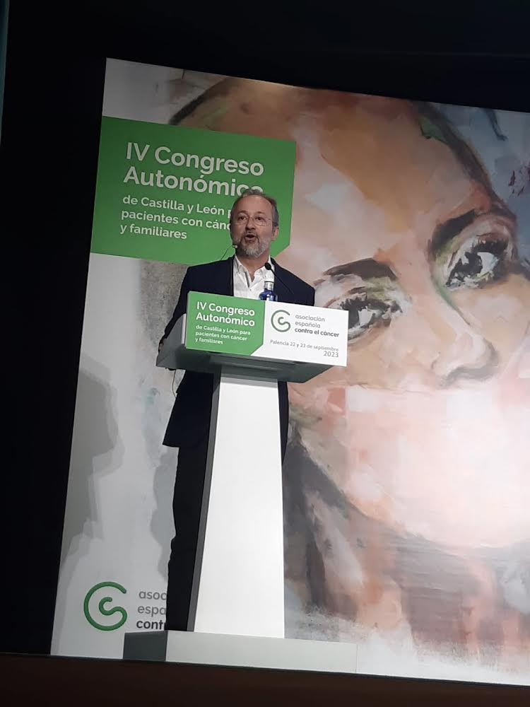 Se hablaba de fibroblastos, inmunoterapia, sarcoma, medicina de precisión, biomarcadores, inmuno-vigilancia, linfocitos T, cuando se advirtió también el riesgo de mirar solo a la enfermedad y no a los enfermos. Fue entonces cuando José Carlos Bermejo impartió su conferencia sobre la dimensión espiritual en la vivencia del cáncer, desde un foco humanizador y recogiendo los trabajos de investigación realizados en el Centro sobre esta temática: "Espiritualidad y salud", "Espiritualidad para hoy", "Aspectos espirituales de los cuidados paliativos", así como trabajos publicados en revistas como escala para medir el sufrimiento, satisfacción con la asistencia espiritual, etc.