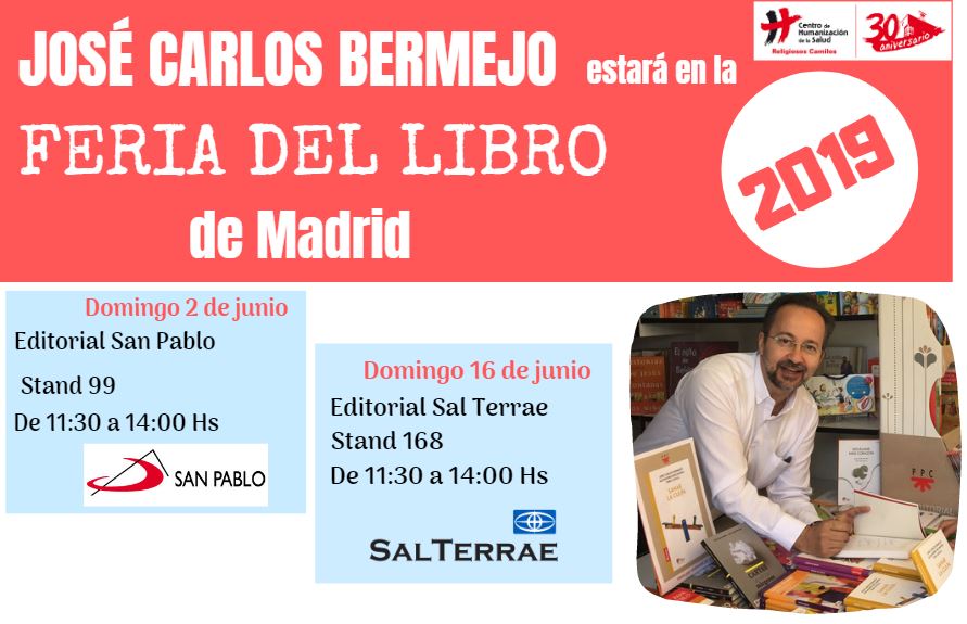 El día 2 de junio en San Pablo en el stand 99 con novedad editorial ("Relación pastoral de ayuda al enfermo"), y el 16 de junio en Sal Terrae en el stand 168, con el fresco título "La muerte apropiada". En ambos, por la mañana.