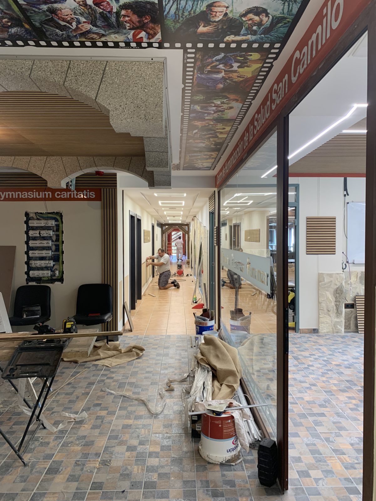 En San Camilo, las experiencias de formación son especiales. Las hacen las personas; pero también los espacios envuelven. José Carlos Bermejo remata, con su equipo, las aulas para el inicio del curso. Los espacios: aulas, pasillos, salas, Centro de Escucha, se convierten en un lugar evocador del gran humanizador de la Asistencia Sanitaria San Camilo de Lelis.