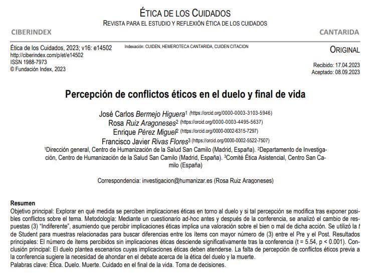 En la vivencia del duelo también existen conflictos éticos. Otra cosa es la conciencia de los mismos. Una cierta psicologización del abordaje del tema del duelo adolece de enfoques éticos. José Carlos Bermejo, Rosa Ruiz Aragoneses profundizan este novedoso enfoque ético en este estudio publicado recientemente en la revista Ética de los Cuidados.