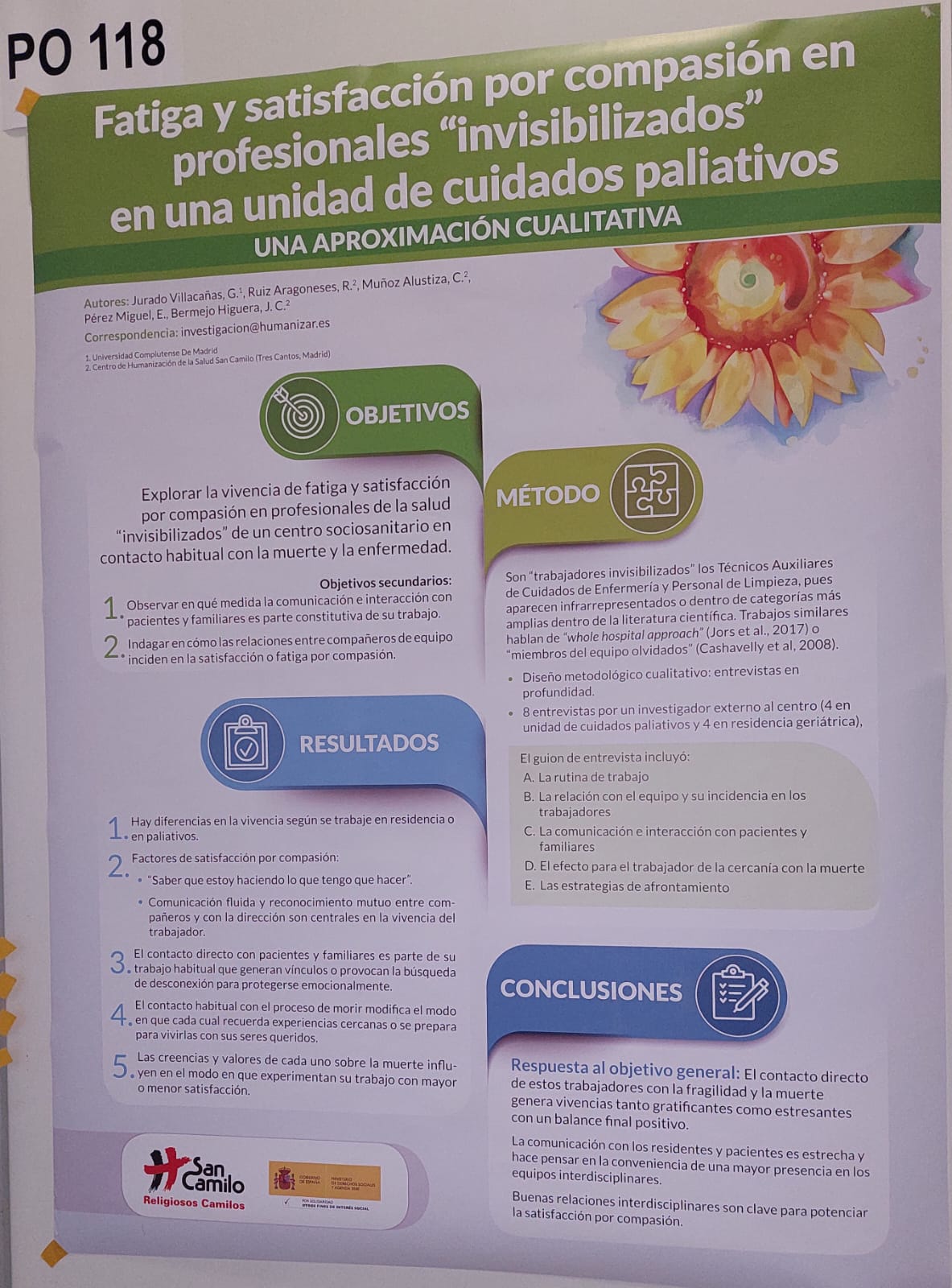 En el marco del Congreso de Cuidados Paliativos SECPAL de Salamanca, José Carlos Bermejo cuenta con el póster sobre "fatiga y satisfacción por compasión", mostrando que ambos se dan cita en cuidadores al final de la vida.