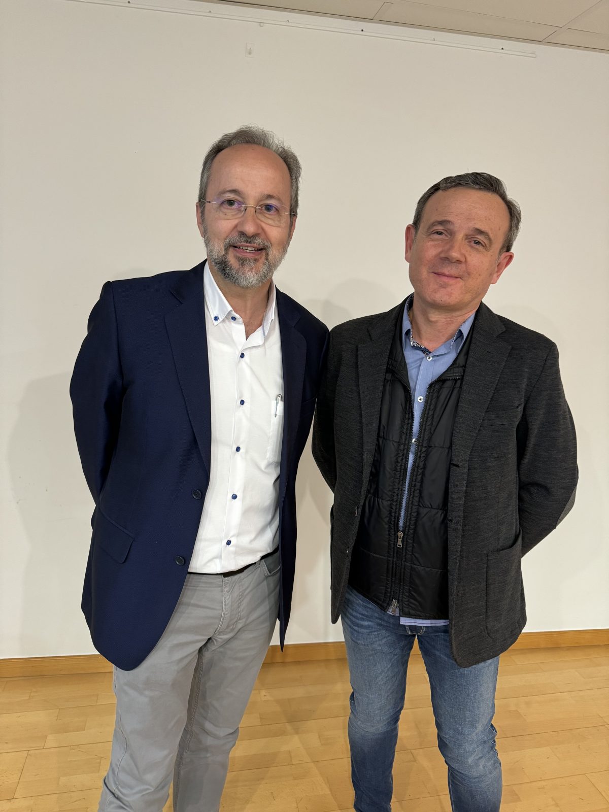 El Director de la Unidad docente y del CAP de Cambrils (Tarragona), Francisco Margalef encuentra a José Carlos Bermejo, interesado por la formación en duelo de los profesionales de la salud.