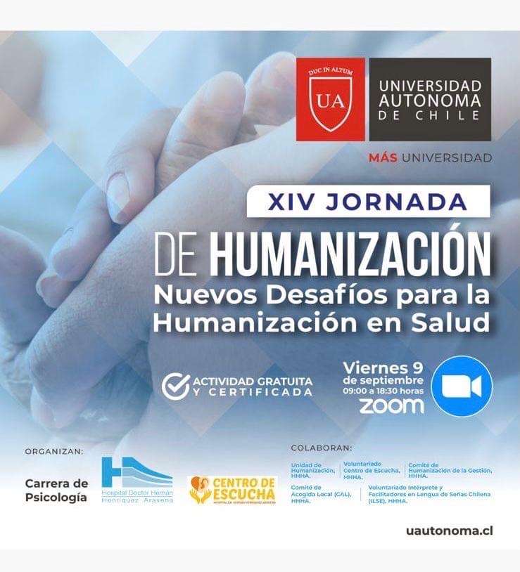 Más de 300 personas asisten a la XIV Jornada de humanización de la salud online del hospital, universidad autónoma y centro de escucha en Chile. José Carlos Bermejo diserta sobre duelo digital.