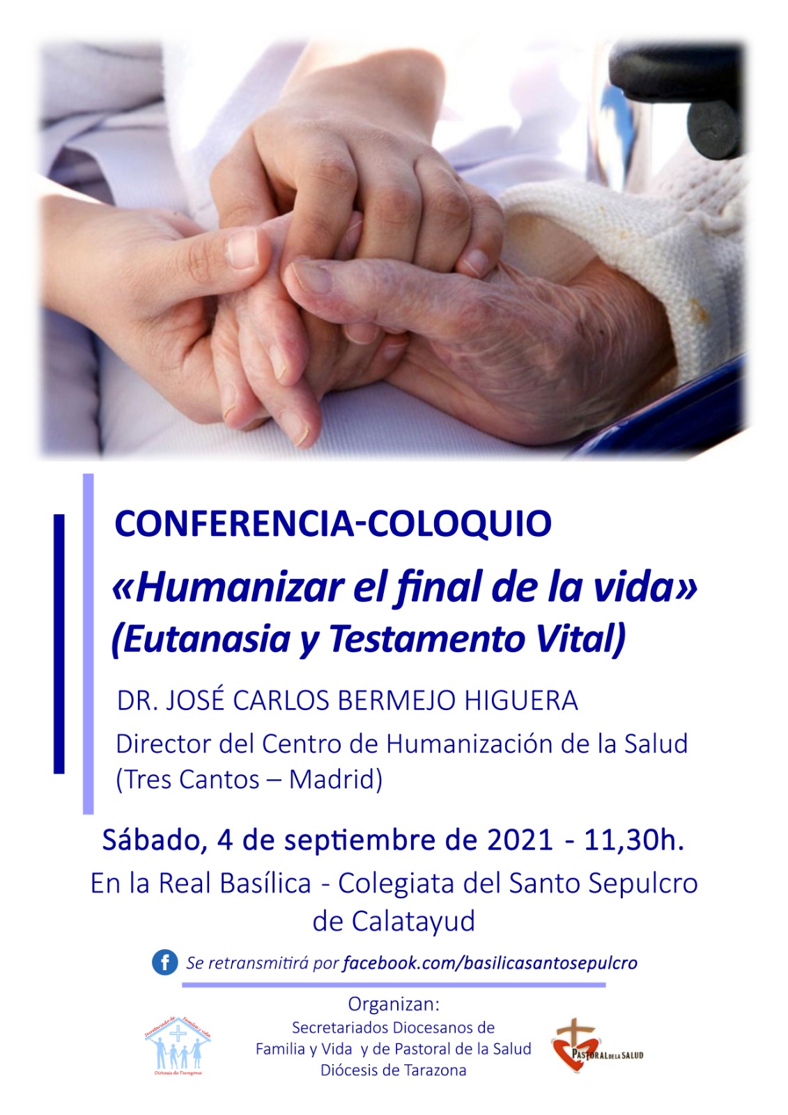 El Secretariado Diocesano de Familia y Vida y de Pastoral de la Salud de la Diócesis de Tarazona organiza una conferencia Coloquio el próximo sábado 4 de septiembre con la intervención de José Carlos Bermejo quien reflexionará sobre la eutanasia y el testamento vital.