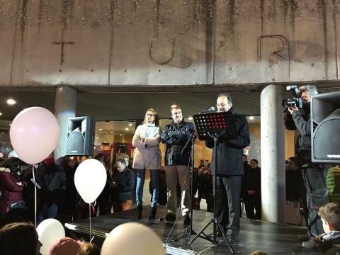 En la plaza del Ayuntamiento de Tres Cantos, José Carlos Bermejo, junto al Alcalde de la Ciudad, D. Jesús Moreno, ha pronunciado el pregón de la Navidad. En él, ha evocado el origen y sentido de algunos de los símbolos que utilizamos para hacer fiesta, y ha desafiado a construir, movidos por el significado del Misterio que celebramos, un mundo más humano, más solidario, con menos violencia y más alegre. "Arre borriquito, arre", de manera recurrente, exhortaba a celebrar con sentido y a trabajar por ser mejores personas. (Leer Pregón de la Navidad)