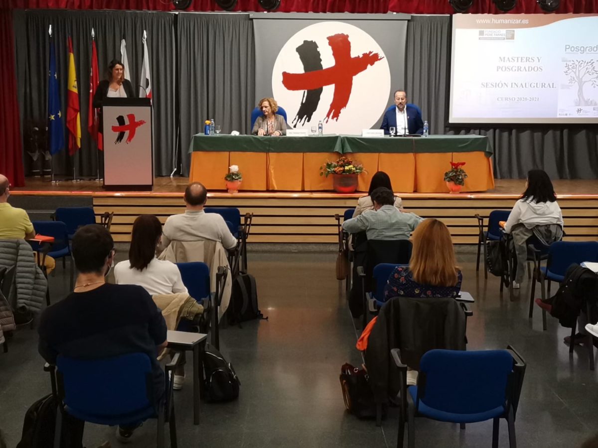 El Dr. Joan Andreu Rocha, decano de la Facultad Pere Tarrés (Ramón Llull), Felicidad Vicente, coordinadora de posgrados, Cristina Muñoz, responsable de formación y José Carlos Bermejo, Director Académico, inauguran los posgrados del Centro de Humanización de la Salud con un centenar de alumnos presentes u online. Coordinan también Elena Avila, Marisa Magaña y Eva García. Counselling, duelo, paliativos, gestión, pastoral de la salud, son los títulos inaugurados hoy. El Dr. Luis Aranguren impartió la conferencia sobre el cuidar.
