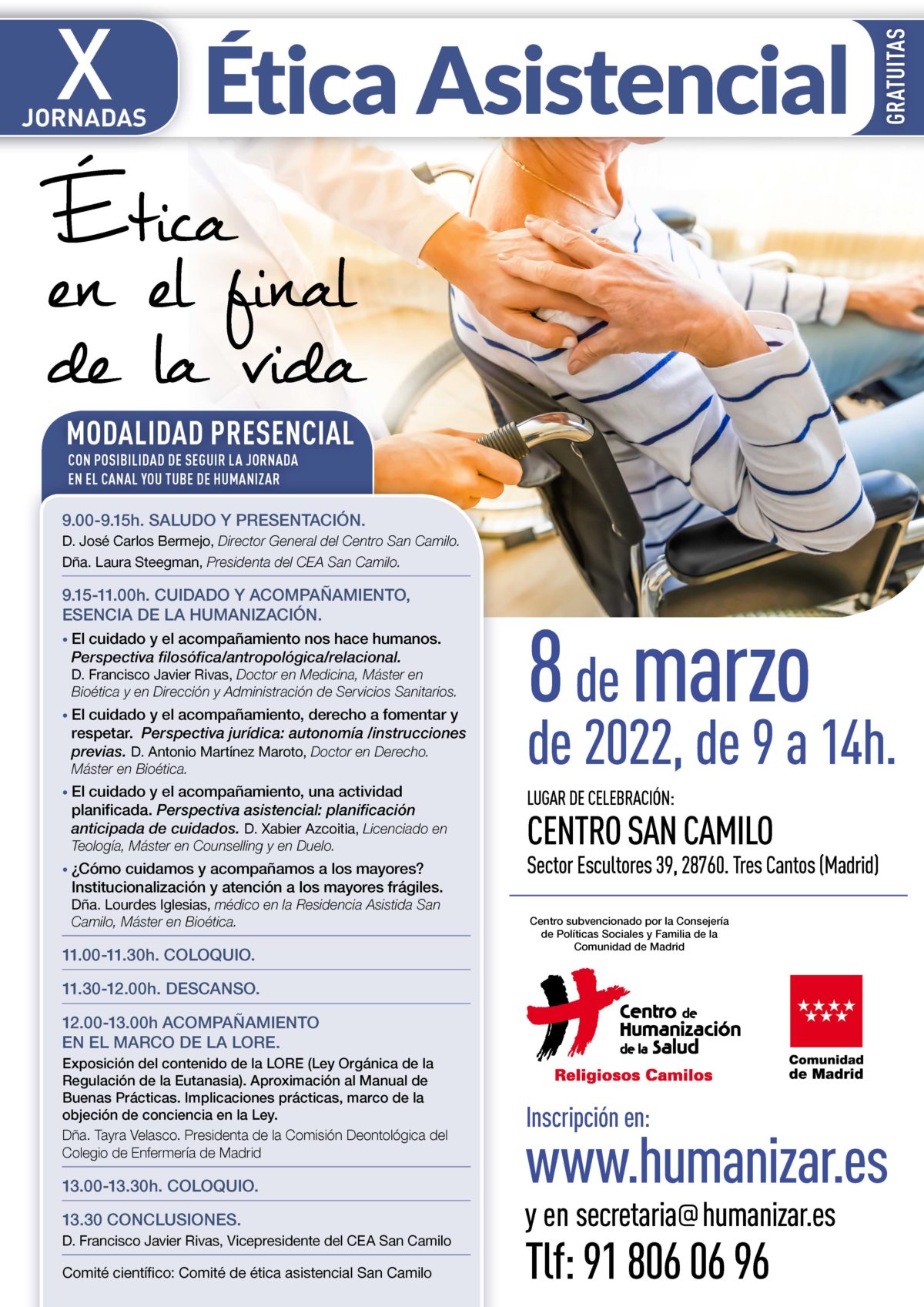 El 8 de marzo de celebra en San Camilo de Tres Cantos, la Jornada anual de bioética, organizada por el Comité de Etica Asistencial del Centro. Intervendrá en la inauguración José Carlos Bermejo en el marco de la situación nueva planteada por las leyes actuales que afectan al final de la vida.