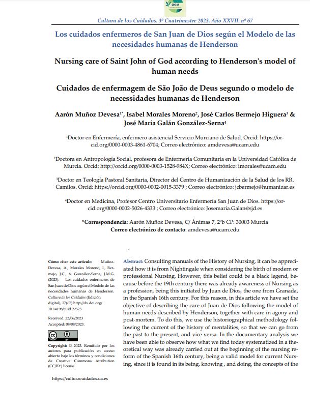 Publicado un estudio con la participación de José Carlos Bermejo sobre los cuidados enfermeros según el Modelo de las necesidades humanas de Henderson.