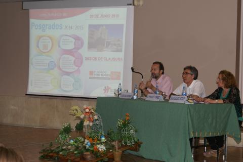 Más de 100 alumnos celebraron el fin de curso universitario el 20 de junio entre satisfacción y compromiso de “seguir siendo mendigos del aprendizaje”... Máster en counselling, máster en intervención en duelo, especialista en humanización, en pastoral de la salud, en cuidados paliativos y en gestión de centros socio-sanitarios.Seis líneas formativas que ofrece el Centro de Humanización de la Salud en Tres Cantos, Madrid. El decano de la Facultad de Educación Social y Trabajo Social, Dr. Paco López, la coordinadora de másters y posgrados, Felicidad Vicente, y el Director Académico, Dr. José Carlos Bermejo, clausuraron el año académico precedidos por la conferencia de Fidel Delgado, titulada “No me toques los paradigmas. De la resistencia a la aceptación del cambio”.