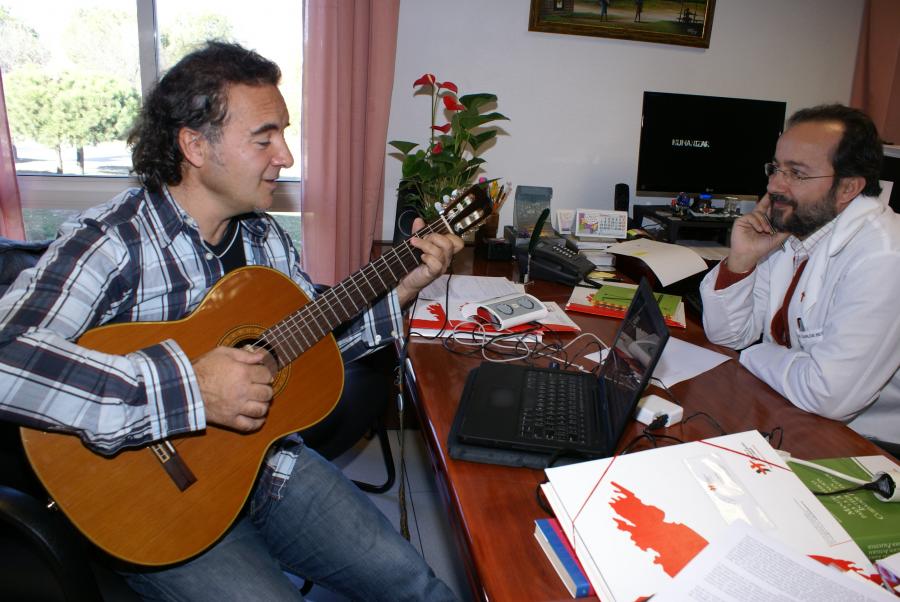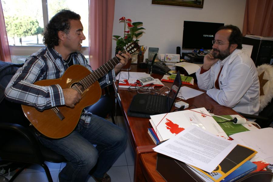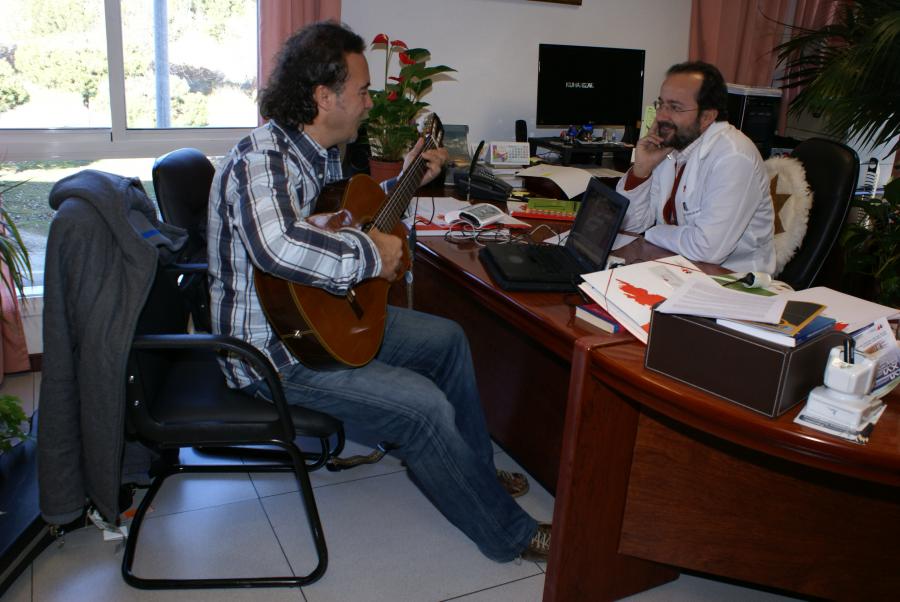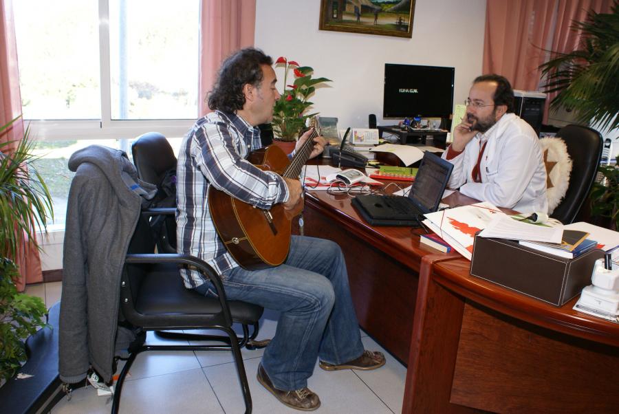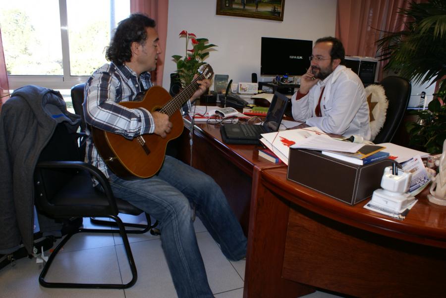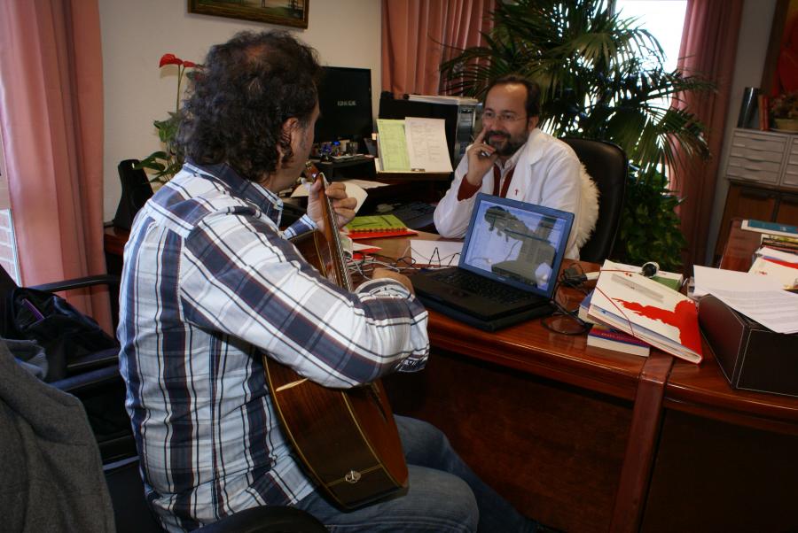 Por segunda vez José Carlos Bermejo solicita al cantautor Migueli un CD para el Centro de Humanización de la Salud (Humanizar-2) cuyos temas pueden escucharse en esta página en la sección audio. La preparación de los temas es una tarea compleja al tratarse del abordaje de situaciones límite como el sufrimiento, el duelo, la esperanza, la posibilidad de crecer en la crisis (resiliencia), etc. Las imágenes recogen un momento del largo proceso de elaboración del mismo, en el que Migueli muestra borradores de temas para el nuevo CD.