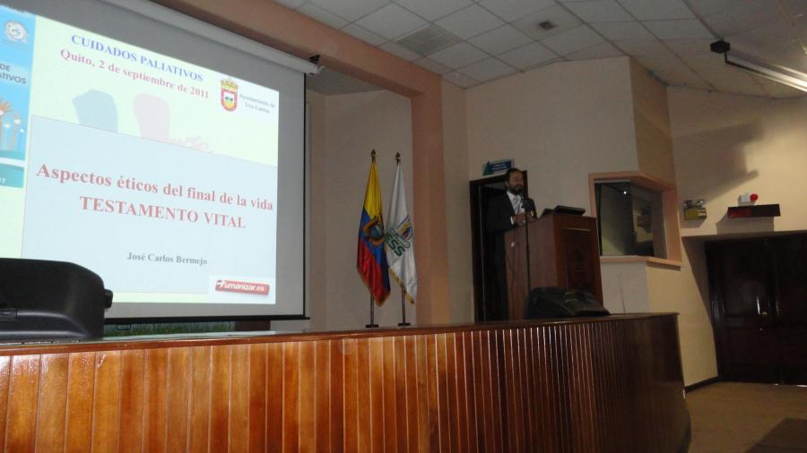 En agosto y septiembre de 2011, José Carlos Bermejo y la Dra. Consuelo Santamaría imparten una serie de acciones formativas en Lima y Quito. En Lima estuvieron presentes en la Universidad Nacional Mayor San Marcos, en CEFOSA (Centro de Formación en Salud de los religiosos camilos), en la Clínica de las Hnas. Camilas, así como en el Colegio de Diplomados en Enfermería de Lima. En Quito, impartieron varias conferencias en el Congreso de Cuidados Paliativos organizado por la Fundación Ecuatoriana de Cuidados Paliativos y el Centro de Humanización de la Salud.