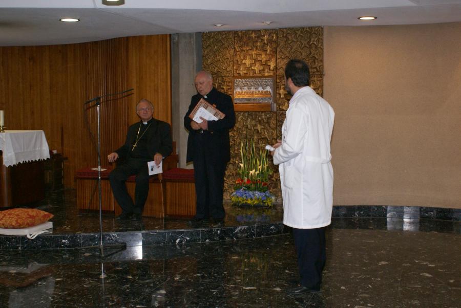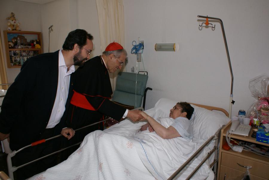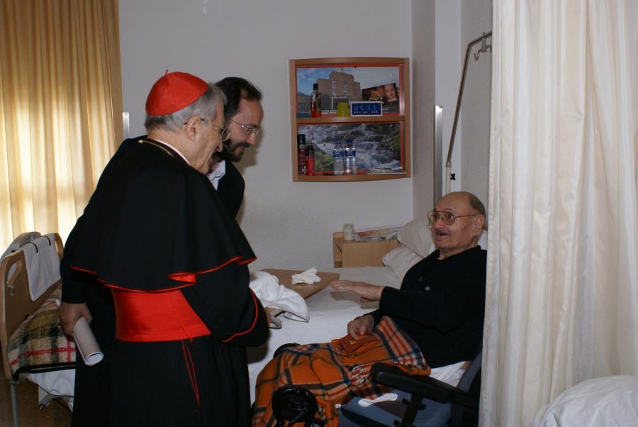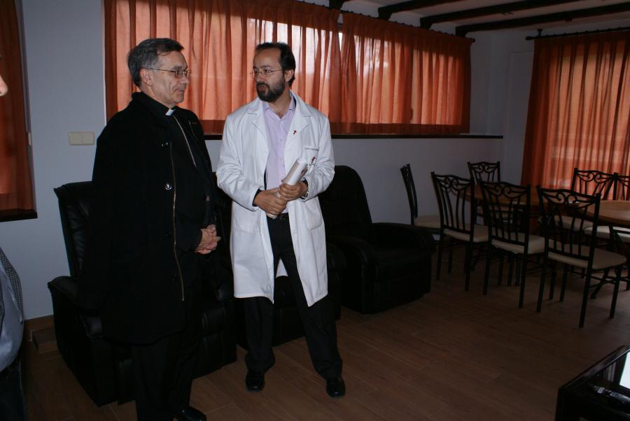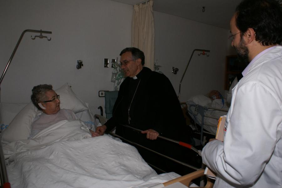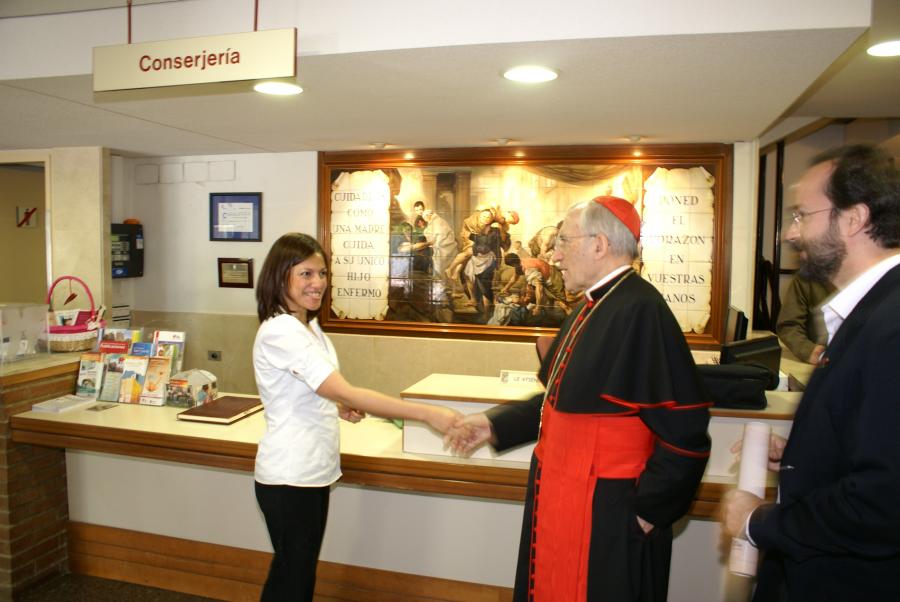 Mons. Zygmunt Zimowski, presidente del pontificio consejo para la pastoral de la salud, junto con Mons. José Luis Redarado, Secretario del mismo, visitan el Centro de Humanización de la Salud. En él, recibidos por el director del centro, José Carlos Bermejo y una representación de la comunidad y de directivos del Centro, reciben información de las actividades realizadas en pro de la humanización y la pastoral de la salud, concluyendo con un encuentro con toda la comunidad religiosa. Mons. Zimowski apreció el trabajo realizado en el ámbito de la pastoral de la salud y elogió la atención del Centro Asistencial, con sus palabras generosas en el libro de visitas.