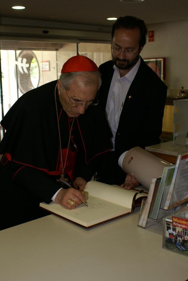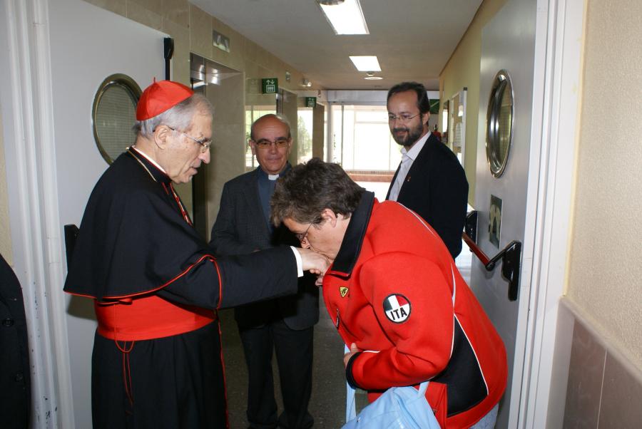 El señor cardenal de Madrid, Mons. Antonio María Rouco Varela y el Sr. Obispo Auxiliar, Don César Franco, visitan en el año 2011, en diferentes momentos, el Centro San Camilo. Recibidos y acompañados por José Carlos Bermejo, Director General del mismo, recorren los servicios, saludan a las personas, se interesan por las actividades e intercambian reconocimientos por las actividades y el carisma camiliano desplegado en el Centro, conocido previamente por ambos, aunque aún no visitado hasta entonces.