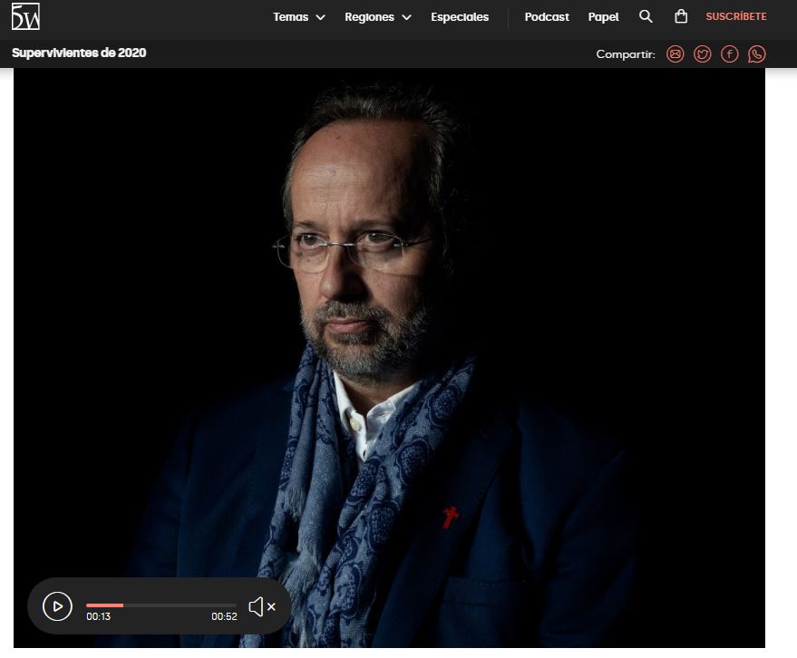 Un reportaje histórico hecho de testimonios de afectados por el COVID-19 en el mes de marzo-abril, recoge palabras de José Carlos Bermejo en la fase de recuperación. Hoy se publicó en la revista 5W y en enero se publicará en la revista europea, Europe news. Es un trabajo muy comprometido y profesional de la periodista Carole Alfarah