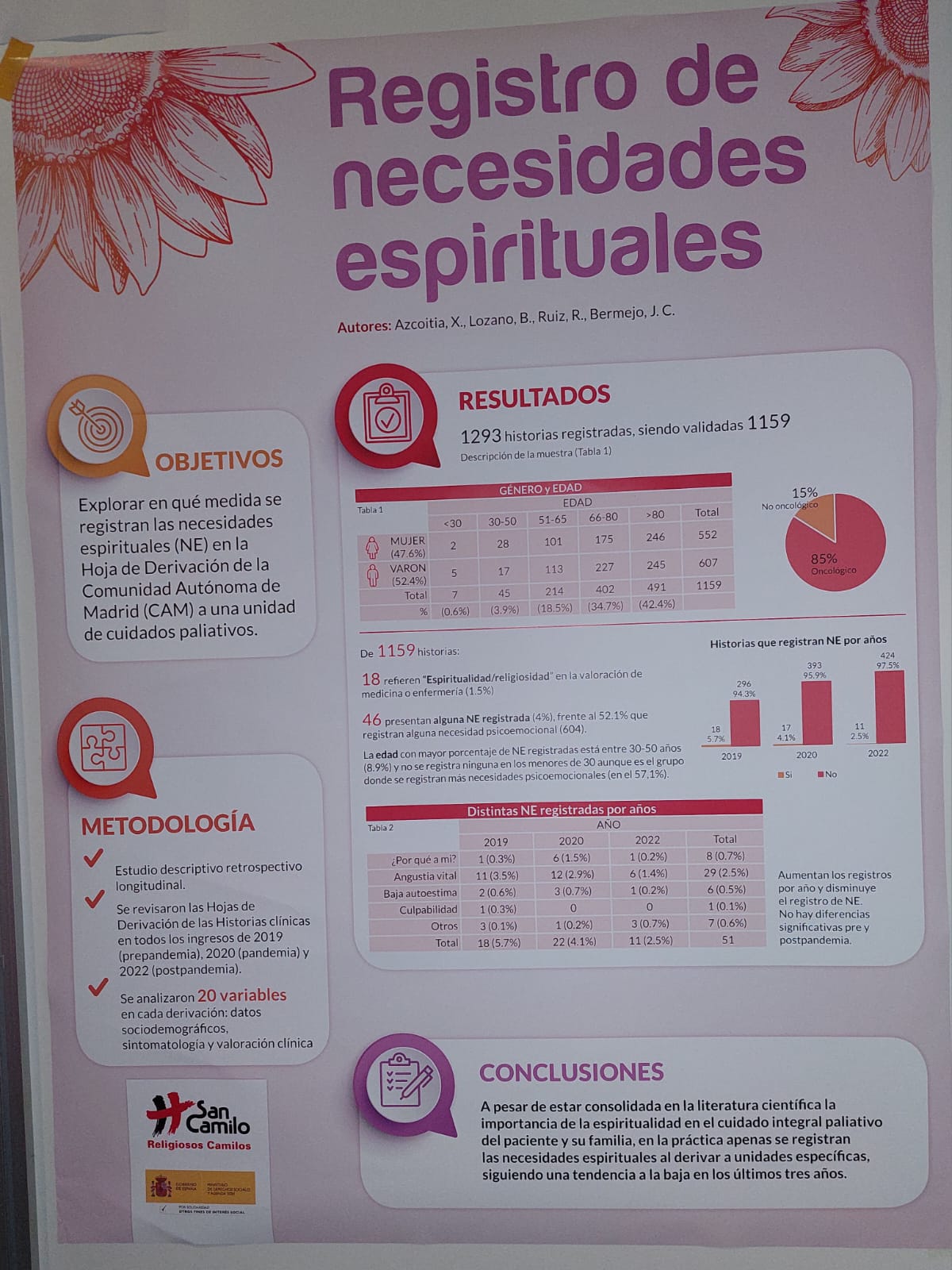 Un estudio realizado en San Camilo, presentado en el Congreso de SECPAL de Salamanca muestra que muy raramente se recogen las necesidades espirituales en la historia clínica. Azkoitia, Lozano, Ruiz y Bermejo desafían a humanizar este aspecto en los cuidados paliativos.