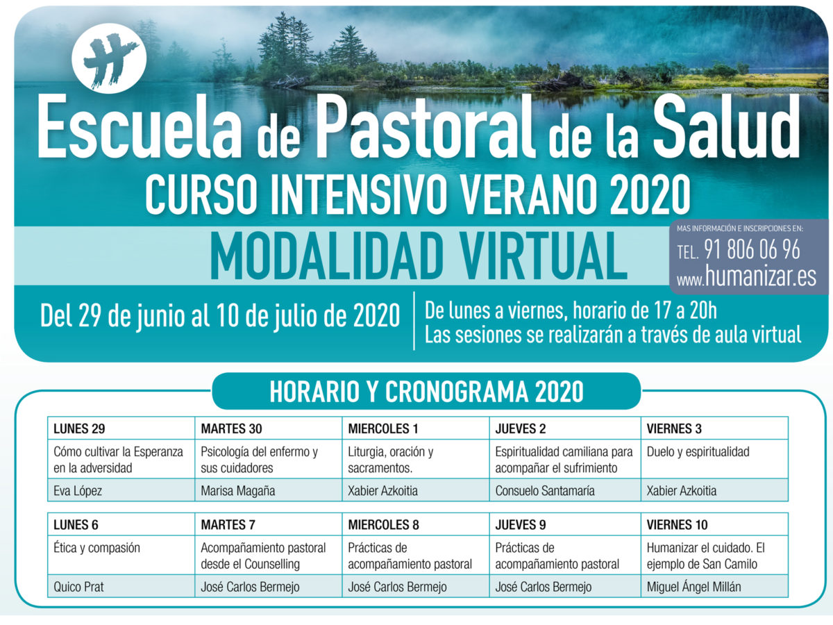 Del 29 de julio al 10 de julio, por espacio de dos semanas, José Carlos Bermejo y un equipo de profesores del Centro de Humanización de la Salud de los religiosos camilos, impartirán en horario de tarde español, la formación del curso intensivo de Pastoral de la Salud. Las inscripciones se realizan en www.humanizar.es o 918060696. Una novedad del Centro al servicio de la humanización del acompañamiento en el sufrimiento, en formato online.