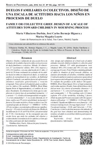 Los padres no se sientes preparados para explicar a sus hijos asuntos relativos a la muerte ni contestar a sus preguntas entorno a ello, improvisan o evitan hablar del asunto ya que dudan sobre la utilidad de informales sobre la muerte. Por otro lado, en el ámbito escolar se oculta, niega e ignora la muerte ya que el tema no se incluye como parte de la formación. José Carlos Bermejo promueve el diseño de una escala de actitudes hacia los niños en procesos de duelo, artículo publicado en la en la revista de Psicoterapia, donde se ha evidenciado la tendencia de los adultos a evitar que los niños participen del duelo familiar. (Ver Artículo)