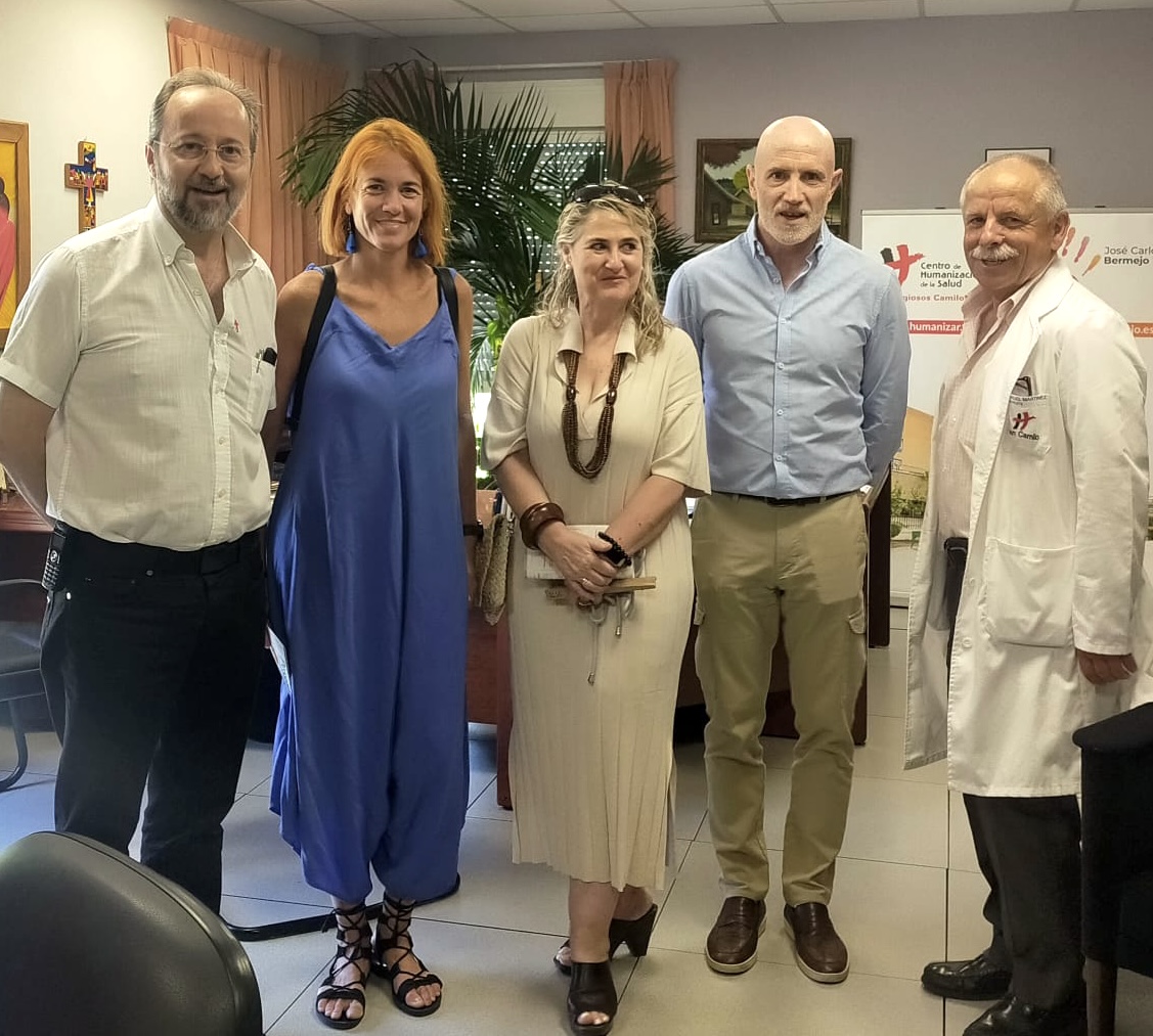 Además de Sonia Lolo, tercera teniente alcalde, Pedro Mario Arancón concejal de Salud pública y seguridad y protección civil, y Sonia del Amo, concejal delegada de mayores. Les reciben José Manuel Martínez Galán -gerente- y José Carlos Bermejo -director general-. Les presentan la variedad de servicios sociales, sanitarios, educativos, editoriales, de tanatorio y columbario, que se encuentran en el Centro San Camilo.