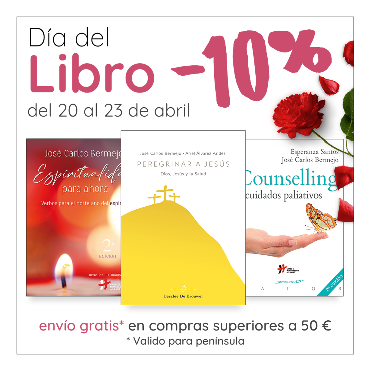 Del próximo domingo 20 al martes 23 de abril celebramos Día internacional del libro. Con motivo de esta celebración la editorial Desclée De Brouwer ofrece un 10% de descuento en algunas publicaciones editadas en colaboración con Centro de Humanización de la Salud. Libros como Espiritualidad para ahora Verbos para el hortelano del espíritu de José Carlos Bermejo, Peregrinar a Jesús Dios, Jesús y la Salud, escrito por José Carlos Bermejo y Ariel Álvarez Valdés y Counselling y cuidados paliativos escrito también por Bermejo con Esperanza Santos podrán ser adquiridos en esta promoción. Una manera de promover la cultura de la humanización.