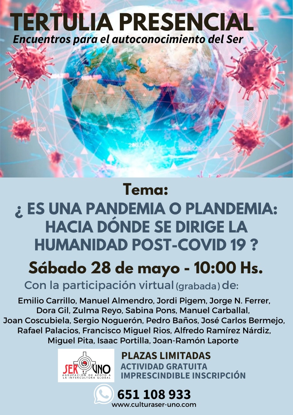 En la tertulia presencial "Encuentros para el autoconocimiento del ser", el 28 de mayo, participará José Carlos Bermejo con su aportación virtual, dando 10 puntos o desafíos en torno a la pandemia vista como oportunidad.