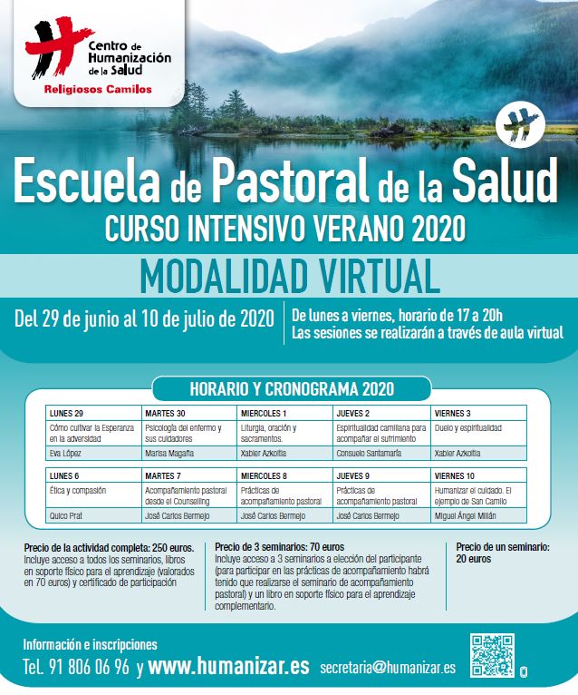 En formato on-line, está listo el programa de la Escuela de Pastoral de la Salud que dirige José Carlos Bermejo y que se impartirá la primera quincena de julio. Las inscripciones están abiertas en www.humanizar.es y en 918060696