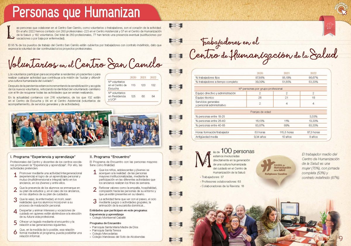 En el año 2022, el Centro San Camilo, bajo la dirección de José Carlos Bermejo, contó con la participación de 260 profesionales y 182 voluntarios.