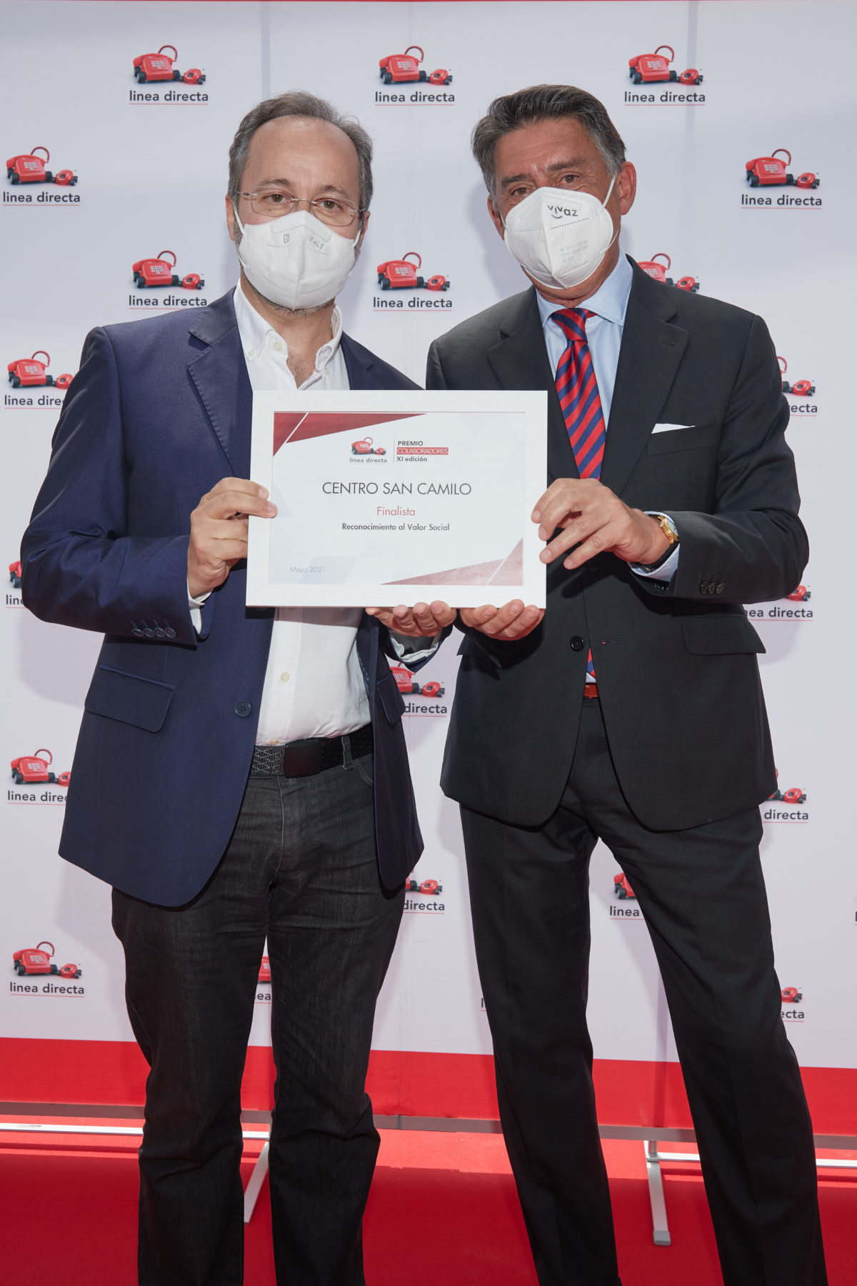 El Consejero Delegado de Línea Directa, Miguel Ángel Merino, hace entrega del galardón de finalista en los premios: "Reconocimiento al valor social 2021" en su XI edición. Recoge el premio José Carlos Bermejo en la ceremonia anual de entrega.