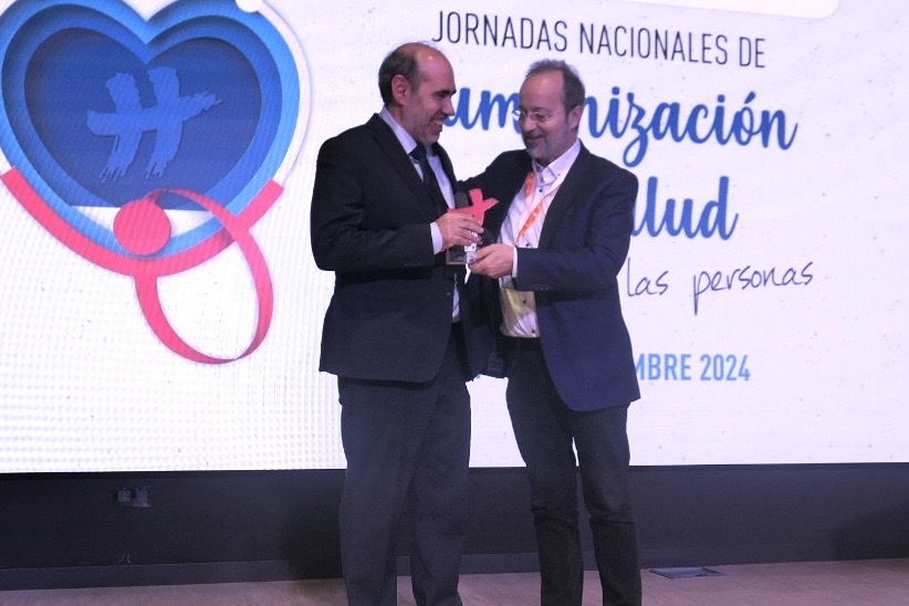 Director de la Cátedra de bioética de Comillas, Rafael Amo, recibe el premio Humanizar de la mano de José Carlos Bermejo, por su aportación a la humanización de la salud.