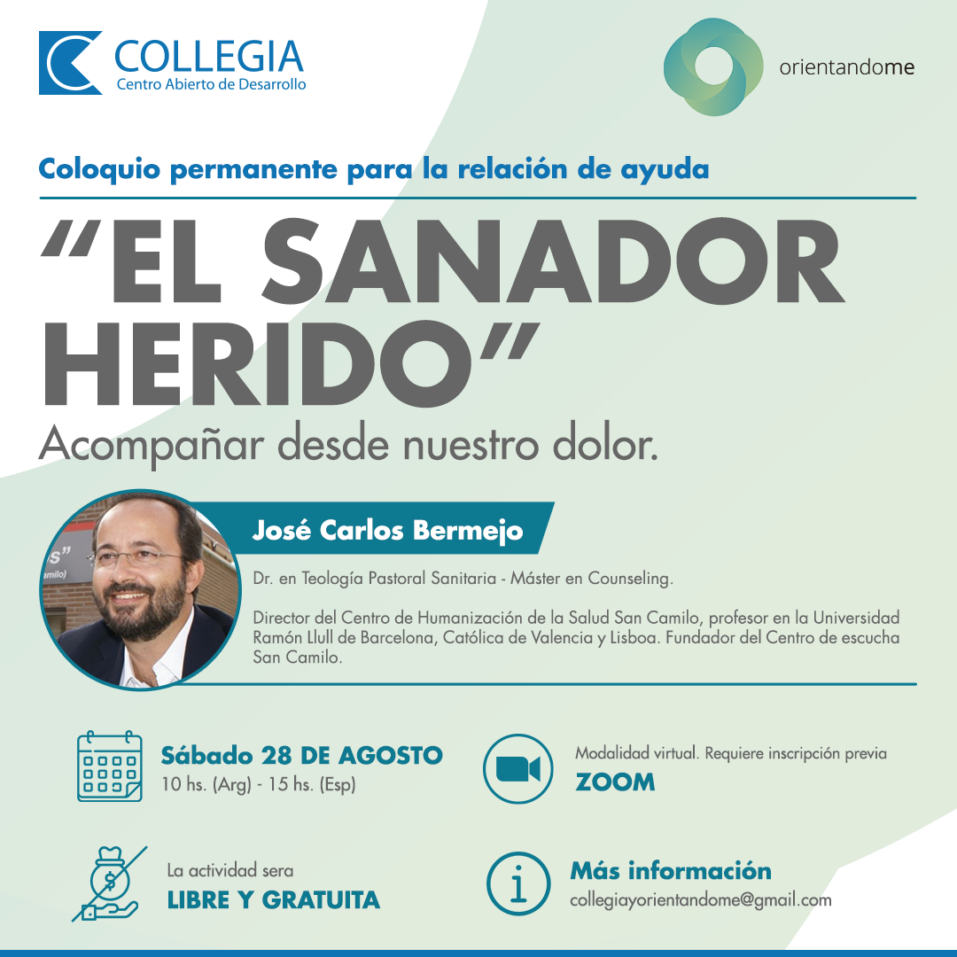 El paradigma del sanador herido, con su histórico en el mito de Quirón, el Siervo de Jahvé, Carl Jung, lo retomará José Carlos Bermejo en la conferencia que impartirá el 28 de agosto on-line para Argentina. Un paradigma humanizador que genera humildad en el profesional de la ayuda si reconoce e integra su vulnerabilidad y su sombra.
