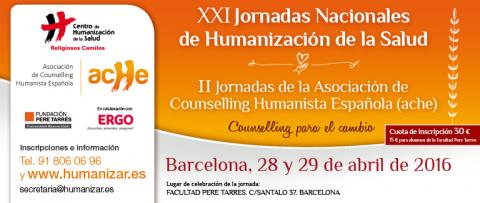 En Barcelona, los días 28 y 29, la Asociación de Counselling Humanista de España, se reúne en torno al desafío de promover el counselling. Pocas iniciativas formativas todavía en nuestro Estado merecen un reconocimiento serio por parte de Universidades que garanticen la calidad y el rigor en la formación en esta forma de relación de ayuda. El programa de las II Jornadas Nacionales de ACHE y la posibilidad de inscribirse en www.humanizar.es José Carlos Bermejo, presidente de la Asociación, impartirá una conferencia sobre “counselling para el cambio”.