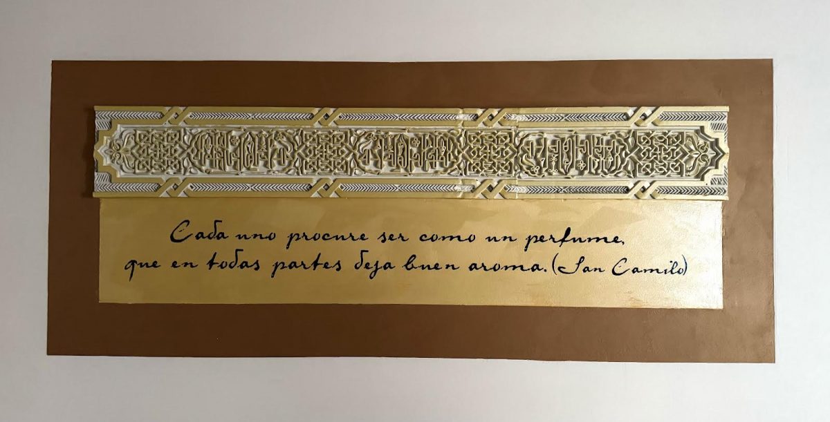 Es una frase de San Camilo: "Que cada uno procure ser como un perfume que en todas las partes deja buen aroma". Bellísima exhortación humanizadora que José Carlos Bermejo puso en las paredes de la casa de Sevilla de los camilos.