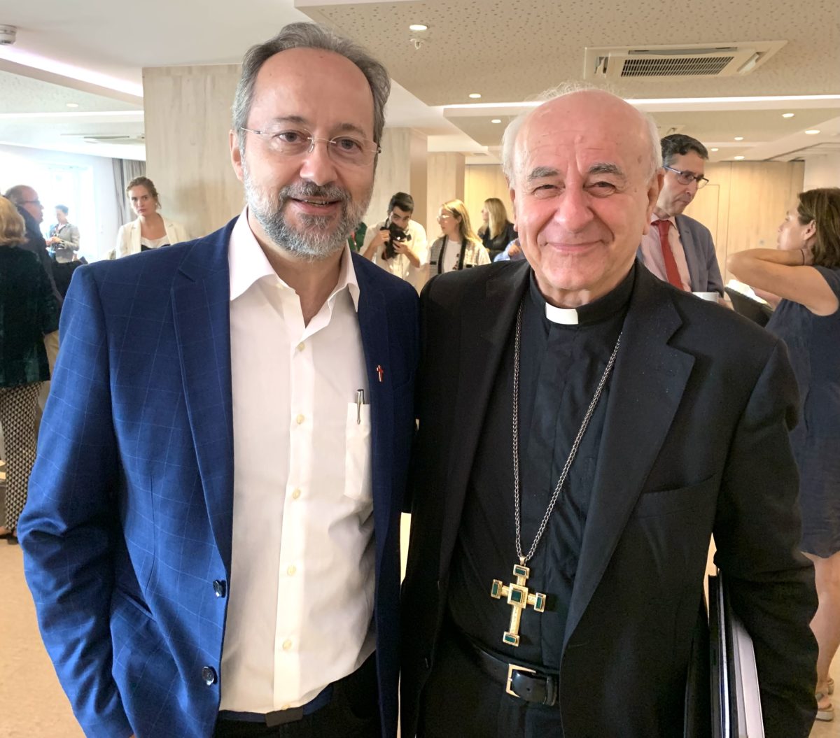 En el Congreso mundial de médicos, con 700 participantes, organizado por SOMOS Community Care, que busca la humanización de la atención primaria en New York, José Carlos Bermejo contacta con Mons. Vincenzo Paglia presidente de la Academia para la Vida del Vaticano, intercambiando sobre aspectos de la humanización de la asistencia sanitaria.